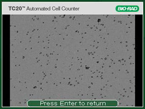 | 查看細胞計數結果后,用戶可以選擇在 TC20? 自動細胞計數器上查看所計數的細胞的圖像,而且只需按一下按鈕即可放大圖像。 | 計數完畢后,可立即將相應細胞圖像的 JPEG 文件導出至 USB 閃存驅動器;若要保存每一張細胞圖像,可啟用自動數據導出功能。每一張細胞圖像都包含一個元標記,其中記錄了計數數據,可使用 TC20 數據分析器軟件進行進一步分析。此軟件(可選)可用于查看單張圖像、執行多文件比較分析,以及生成報告。 | TC20 細胞計數器可存儲 100 次計數結果,您隨時可以根據購買日期和實驗時間找出計數結果。以前的計數結果可通過 USB 端口導出并在 Microsoft Excel 電子表格中打開,有助于輕松比較每次試驗的結果。 |